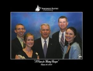 November 6, 2008: Two Friday nights ago I had the privilege of meeting and hearing Lt. Col. Oliver North speak at a Northwest Baptist Seminary fundraising banquet (with the younger Kenningtons, pictured above).  “Ollie,” as he doesn’t mind being called, is a remarkable man. In an almost hour long gripping speech, he began by expressing his dismay with the media’s negative portrayal of our military. As an anchor for Fox News, he is dedicated to bringing the positive side of our troops to light. He told one particular captivating story of heroism that he had personally caught on tape using Reuters’ film. They aired it on his Fox show, but it never showed up on Reuters, AP, or any other outlet. It was simply too heroic; too positive for mainstream media.