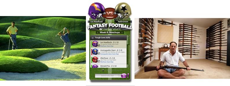 Golf, fantasy football, and finally, guns are serious business to many men. In 2008, Americans spent $4.6 BILLION on guns. A few months ago, I had coffee with a friend who works in the gun department at Cabela’s, and he told me that he sells probably $10K worth of guns/day. He even told me about one customer who had saved up money for years so that he could spend $25K on an antique rifle. When men are passionate about something, they study and immerse themselves in the culture and lifestyle. They save up money to feed their passion. They let themselves be consumed by it, and express their passion through their words, finances, and everything they do.